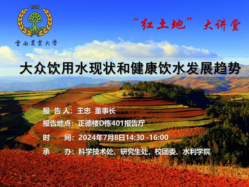 7月8日紅土地”大講堂:大眾飲用水現狀和健康飲水發展趨勢