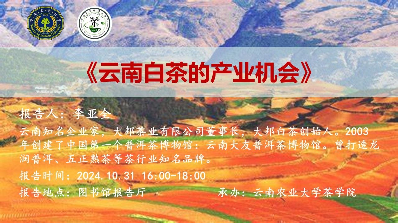 10月31日“紅土地”大講堂:云南白茶的產業機會