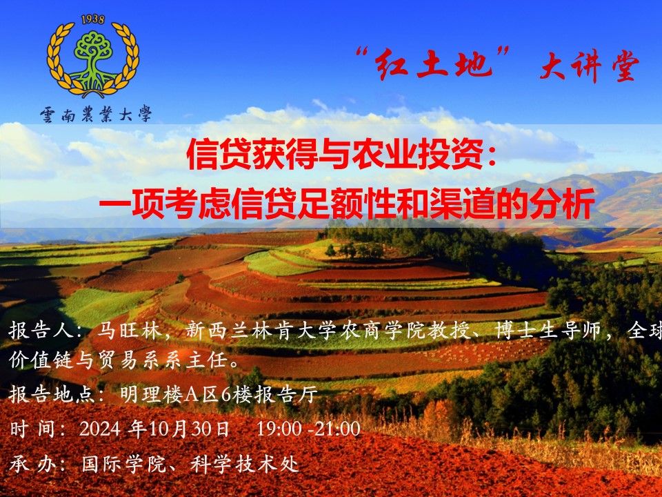 10月30日“紅土地”大講堂:信貸獲得與農業投資:一項考慮信貸足額性和渠道的分析