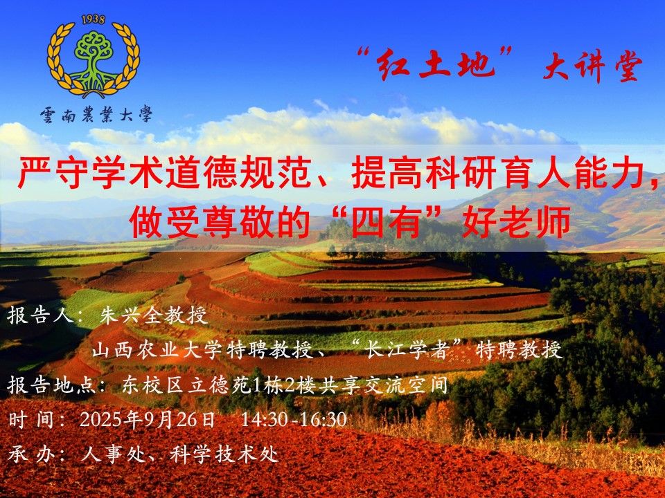 9月26日“紅土地”大講堂:嚴守學術道德規范、提高科研育人能力,做受尊敬的“四有”好老師