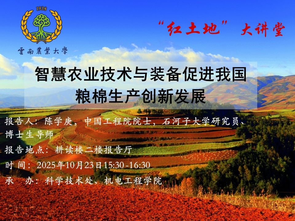 10月23日“紅土地”大講堂: 智慧農業技術與裝備促進我國糧棉生產創新發展