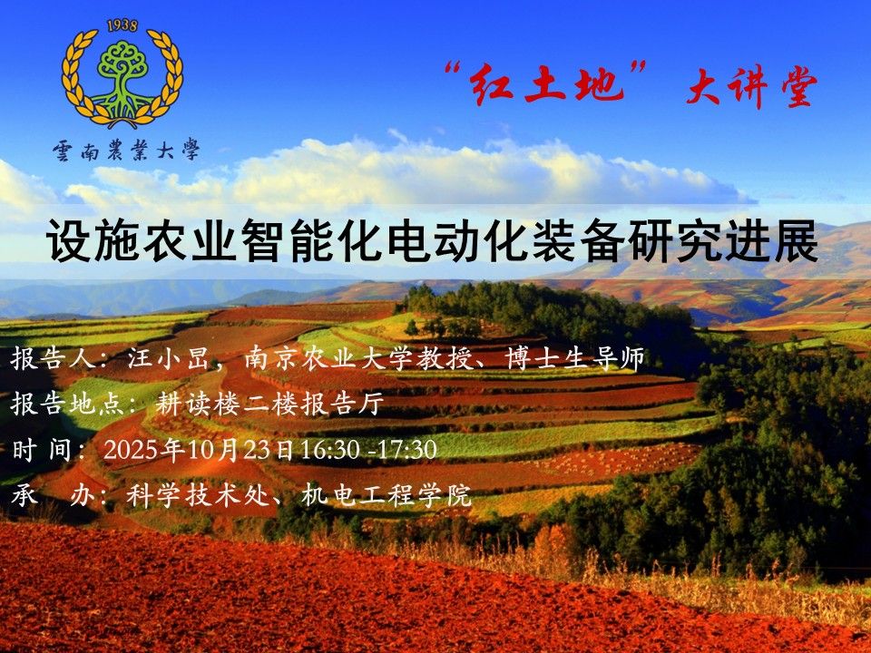 10月23日“紅土地”大講堂:設施農業智能化電動化裝備研究進展