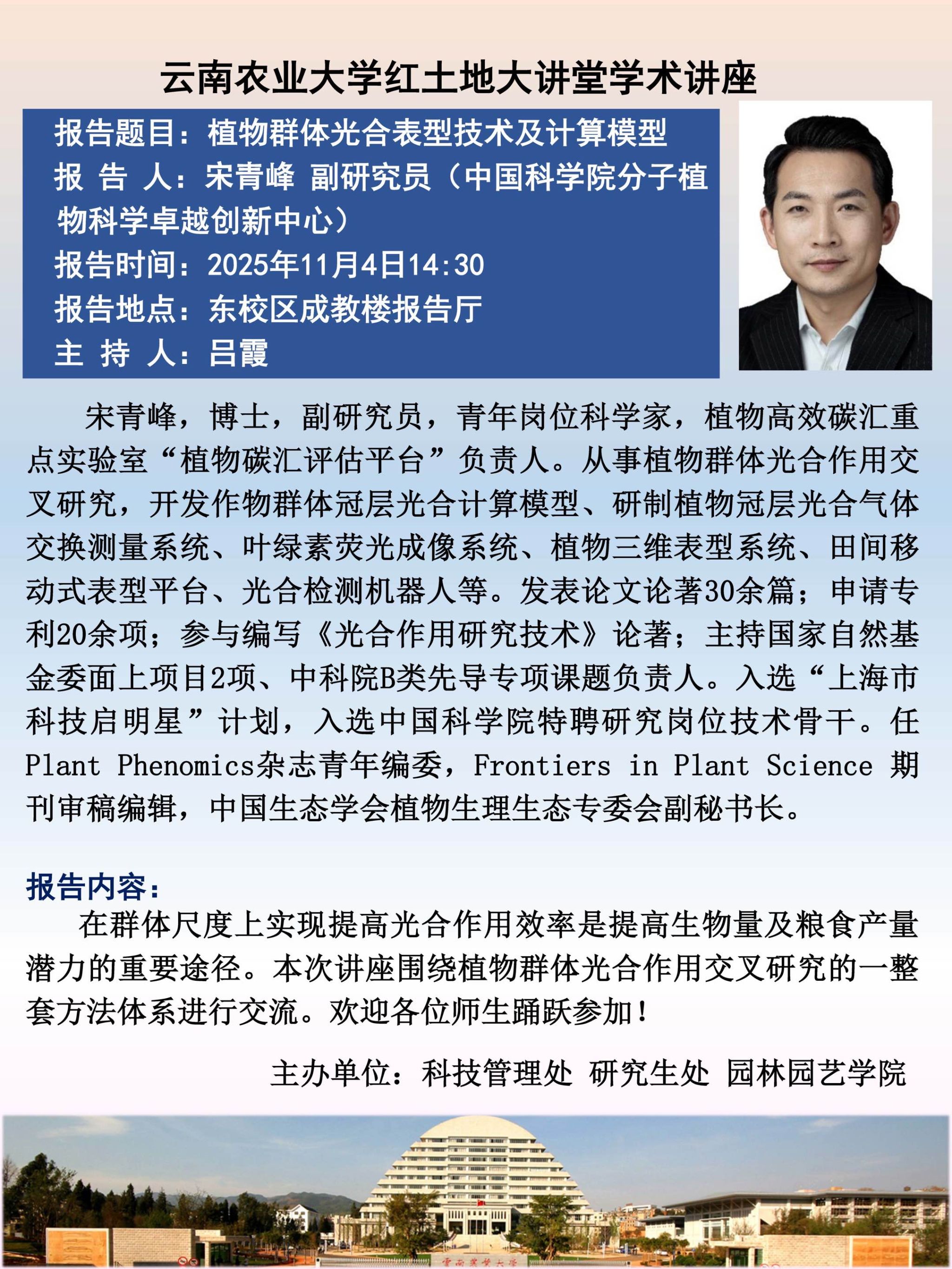 11月4日“紅土地”大講堂:植物群體光合表型技術及計算模型
