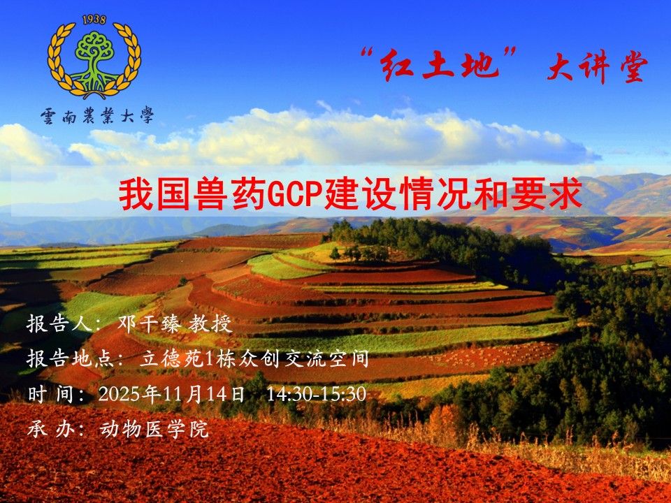 11月14日“紅土地”大講堂:我國獸藥GCP建設情況和要求