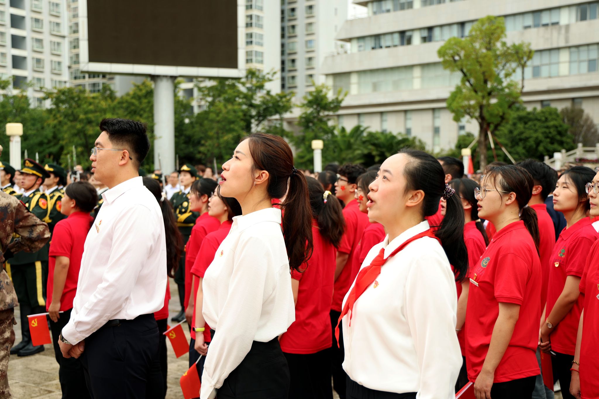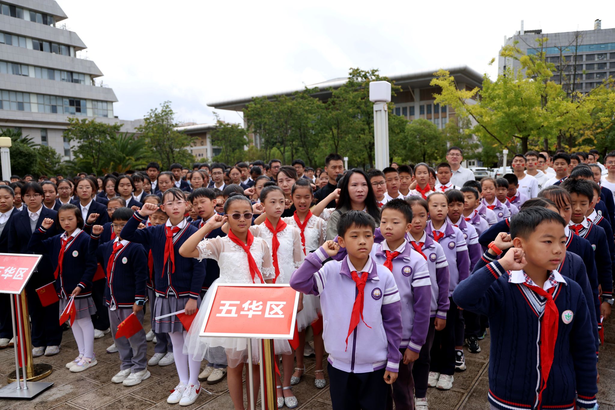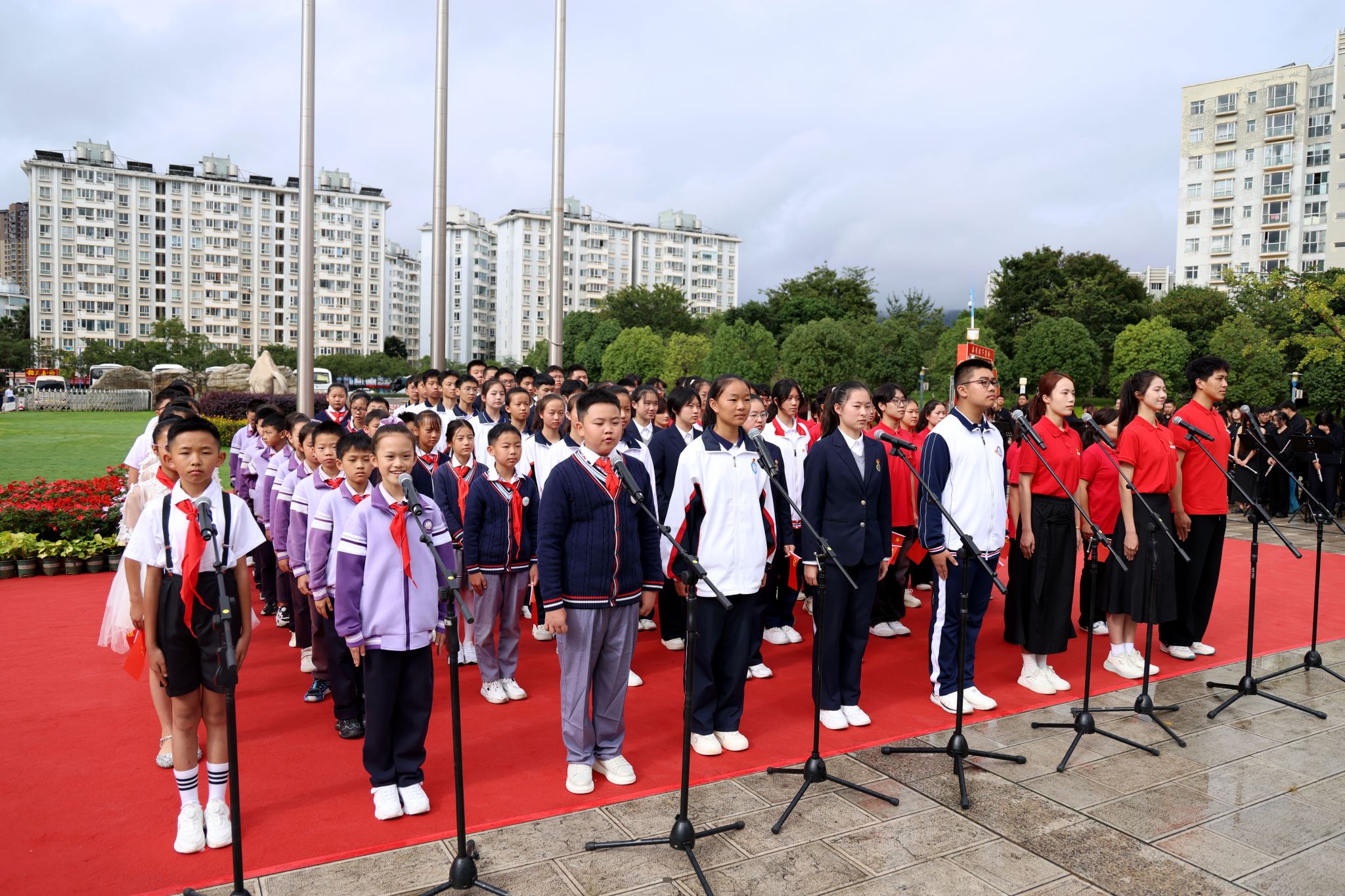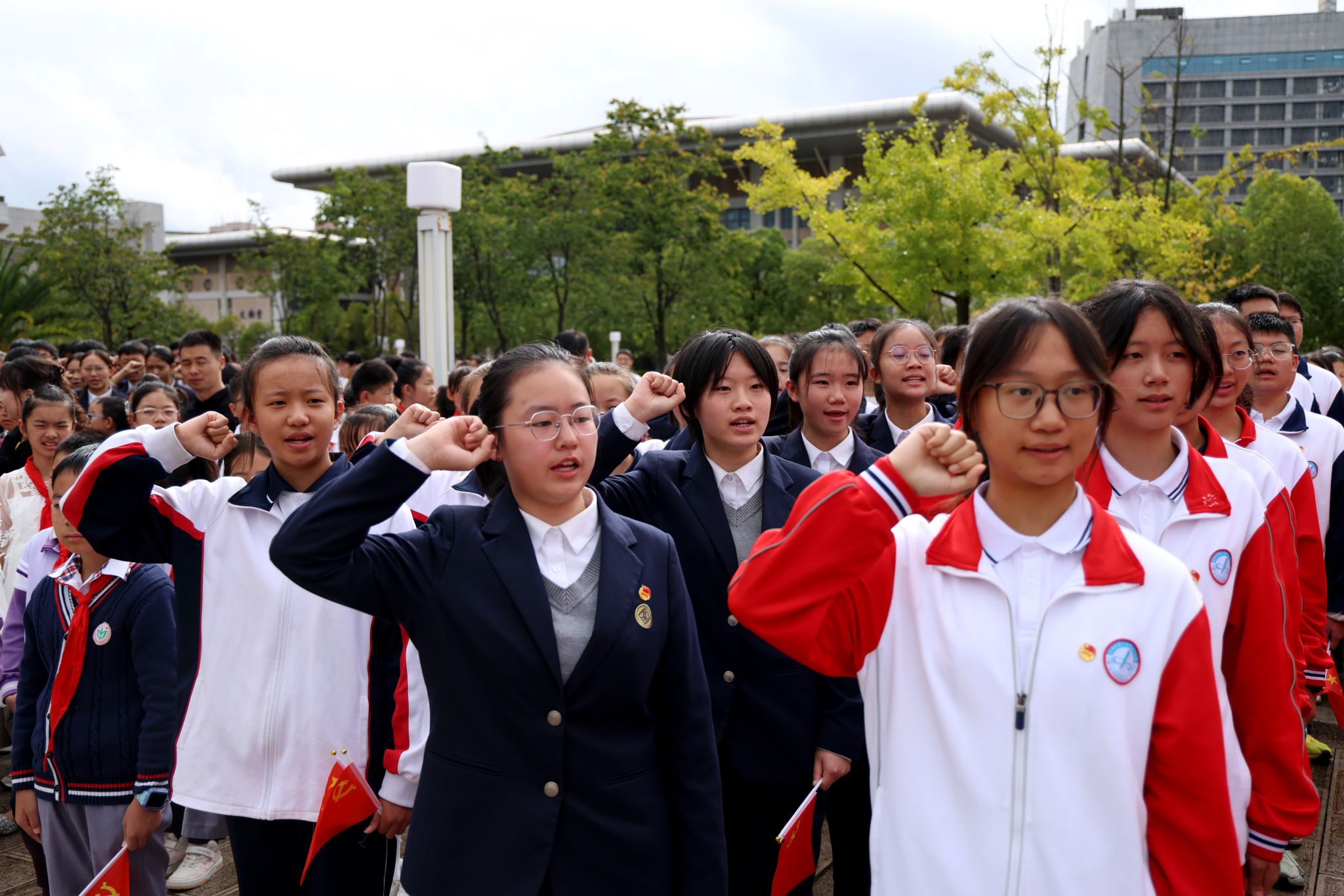 全體少先隊(duì)員、共青團(tuán)員和共產(chǎn)黨員先后重溫了入隊(duì)、入團(tuán)、入黨誓詞,合唱了隊(duì)歌、團(tuán)歌、入黨誓詞歌。五華區(qū)、盤龍區(qū)、西山區(qū)的中小學(xué)生代表和學(xué)校的學(xué)生代表共同帶來國旗下的青春獻(xiàn)詞,祝福偉大祖國。全體中小學(xué)生和大學(xué)生代表觀看了云南農(nóng)業(yè)大學(xué)原創(chuàng)舞臺劇《把論文寫在祖國大地上》。
