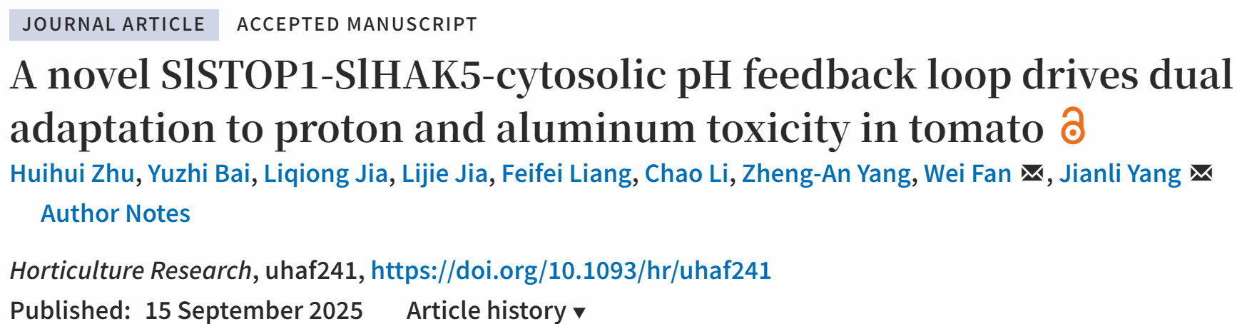 學校楊建立團隊揭示番茄SlSTOP1-SlHAK5抗酸鋁的反饋調節機制