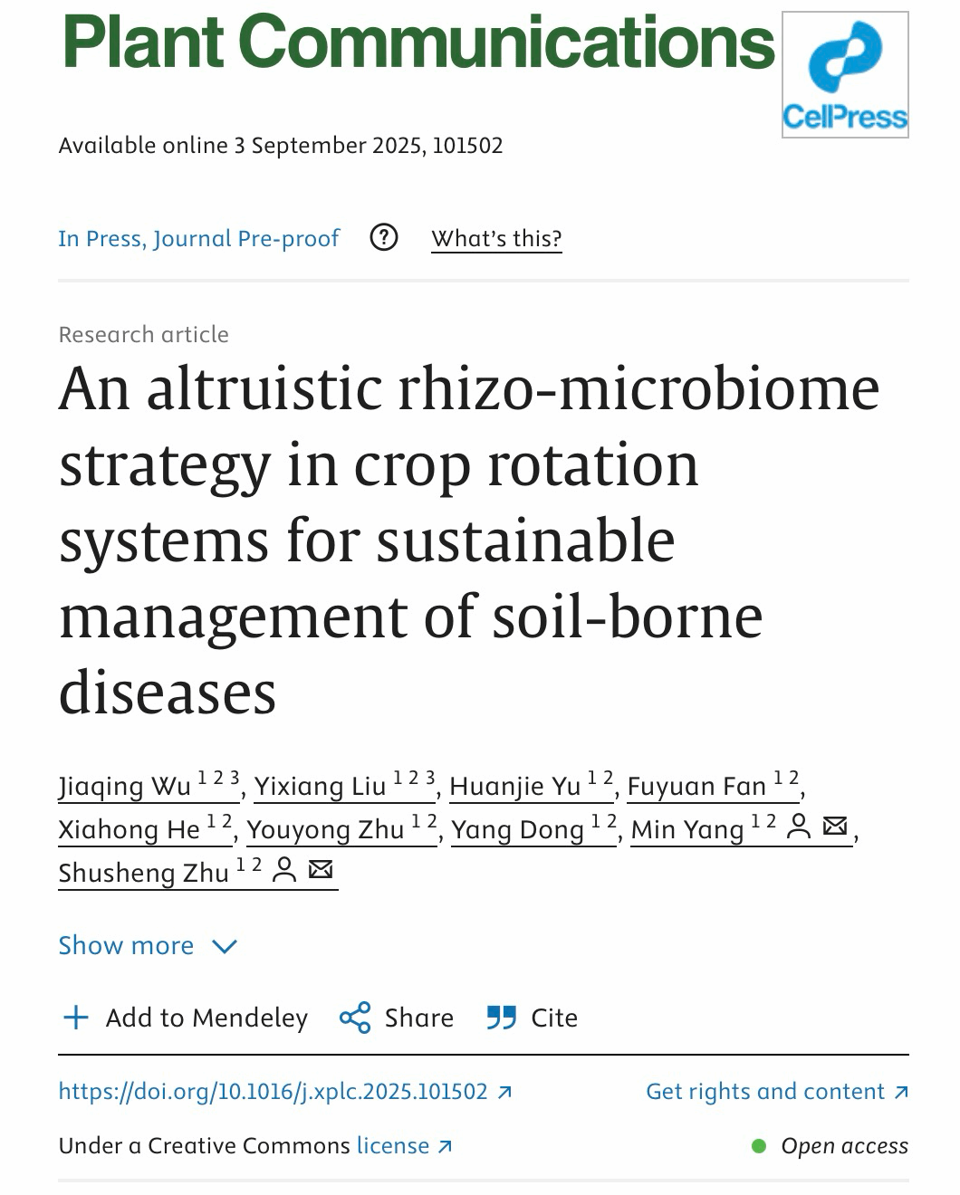 Plant Commun. |“種地活雷鋒”大蒜背后的微生物奧秘:學校朱書生教授團隊解析作物根際微生物利他效應介導的土傳病害可持續管理策略